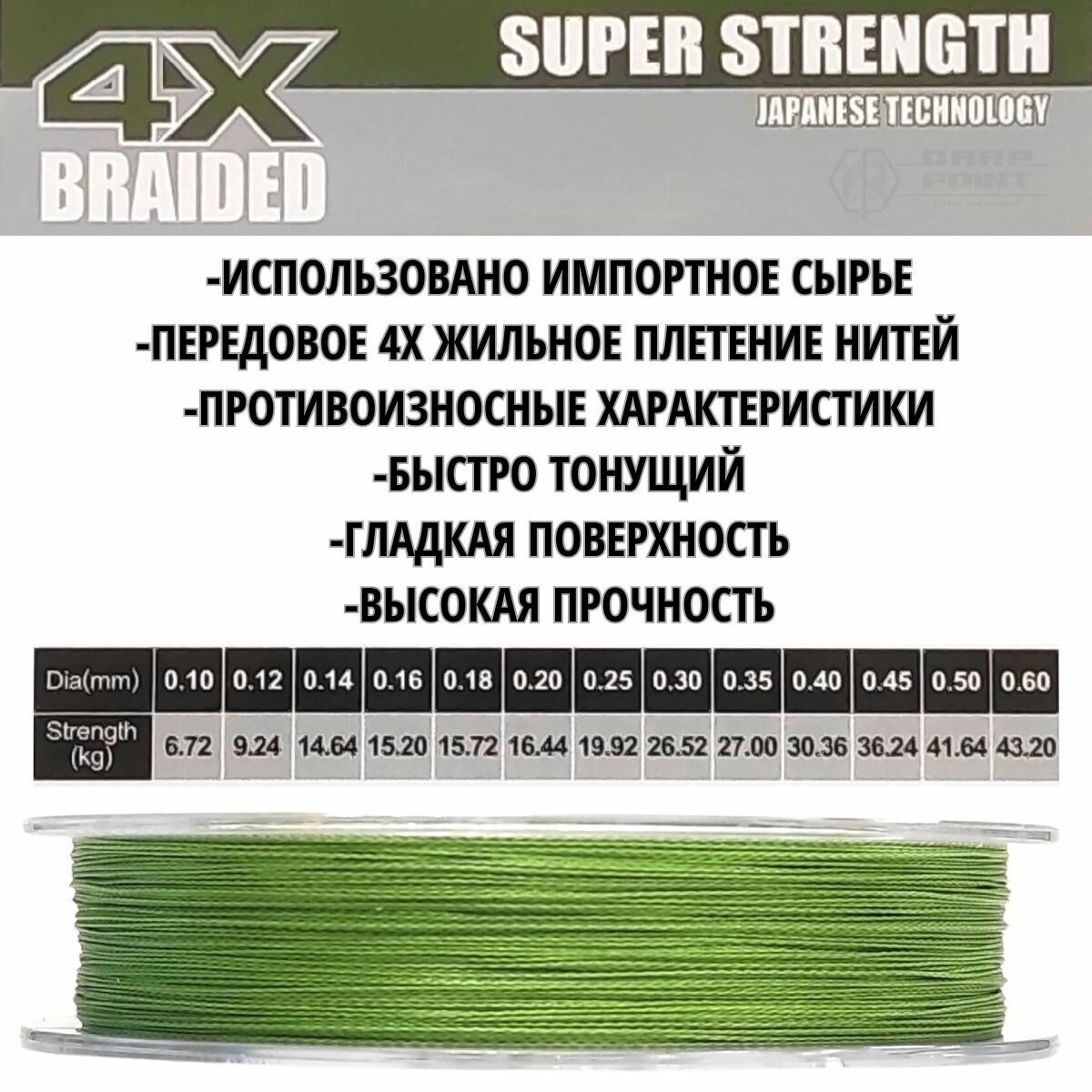 Отзывы на Плетеный шнур KAIDA 4X FIGHTERS Dark green 0.16мм 15.20кг 300м