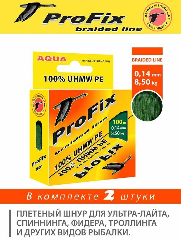 10 цен на Плетеный шнур для рыбалки AQUA ProFix Dark-Green 0,14mm 100m, 2 штуки в комплекте.
