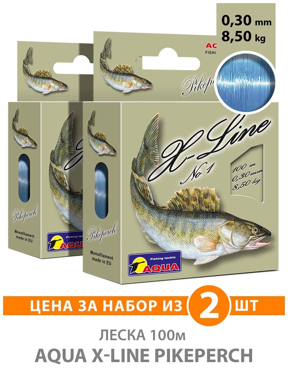 10 цен на Леска для рыбалки AQUA X-Line Pikeperch (Судак) 100m 0.30mm 8.5kg цвет - светло-голубой 2шт