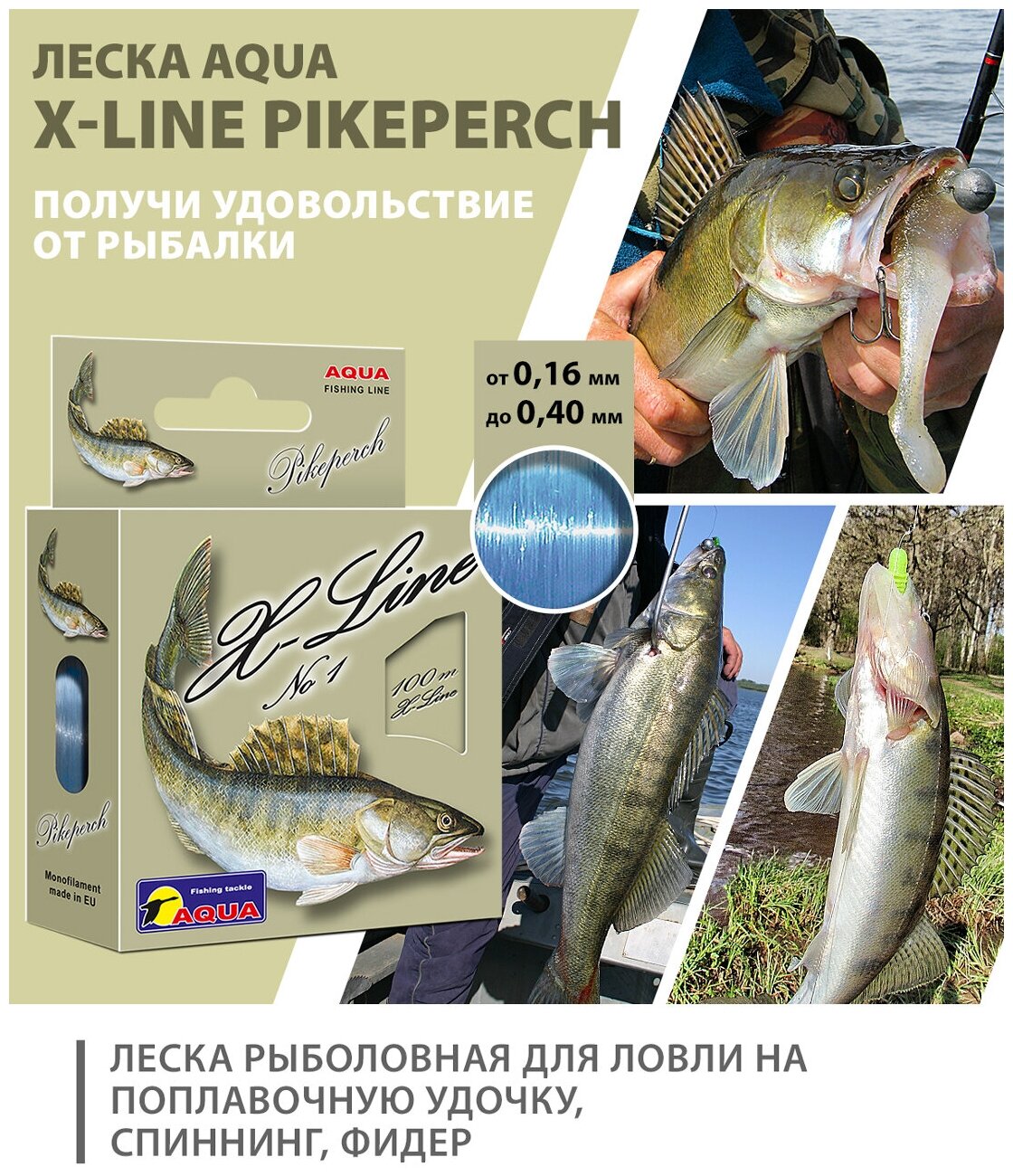 10 цен на Леска для рыбалки AQUA X-Line Pikeperch (Судак) 100m 0.35mm 11.3kg цвет - светло-голубой