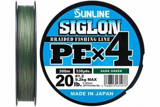 SUN LINE Плетеный шнур SIGLON PE х4 Темно-зеленый 300м. # 1,2 (0,18мм) 9,2 кг