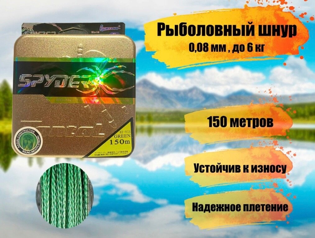 10 цен на Плетеный шнур для рыбалки SPIDER TRITON диаметр 0,08 мм, разрывная нагрузка 6 кг / рыболовная леска плетенка из 4 нитей 150м