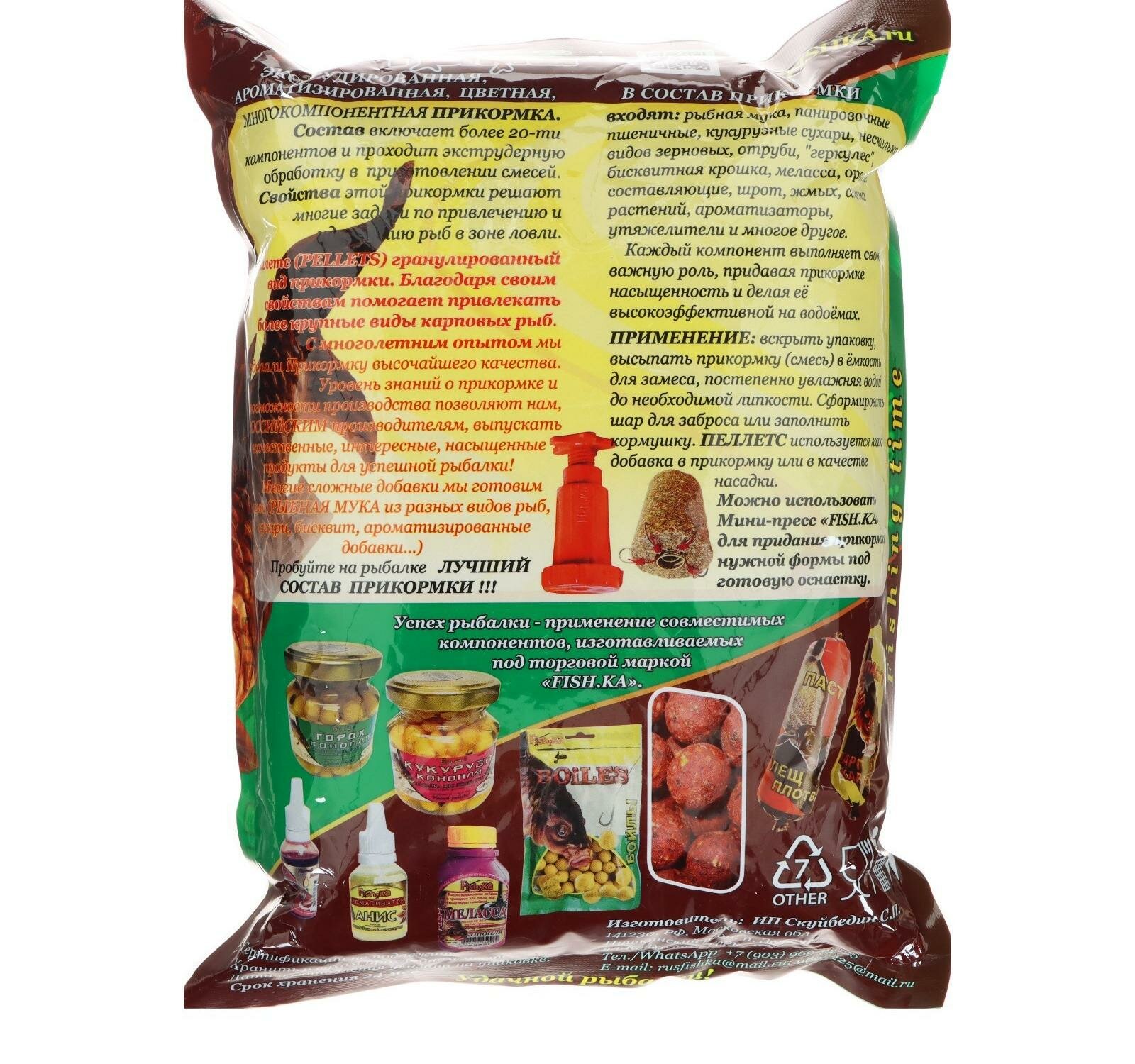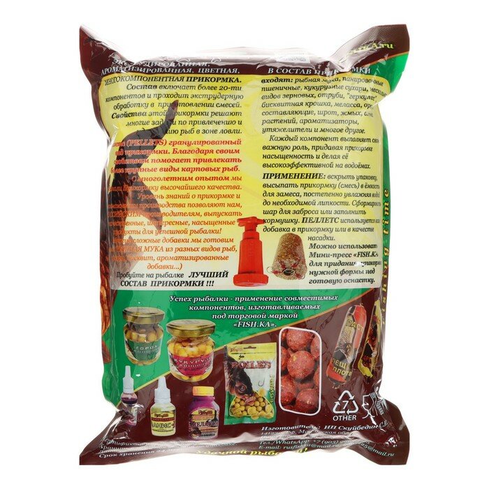 Прикормка для рыбалки Fishka Карп-Карась, гранулы 4 мм, 800 г, сухие, в пакете информация: