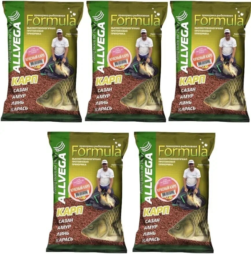 Прикормка для рыбалки ALLVEGA Formula красный карп 5 пачек по 0.9 кг 1 150 ₽