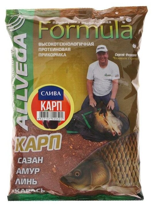 Прикормка для рыбалки ALLVEGA Formula Фидер карп 1 пачка 0.9кг 340 ₽