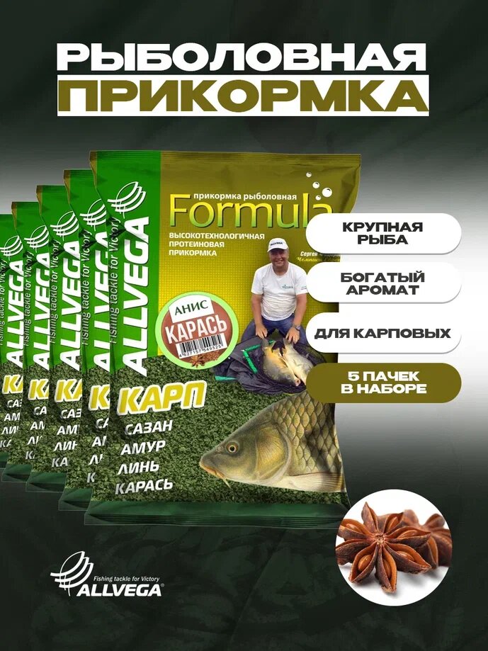 10 цен на Прикормка ALLVEGA "Formula Carassin Anis" 0,9кг (карась анис) 5 пакетов по 0,9 кг