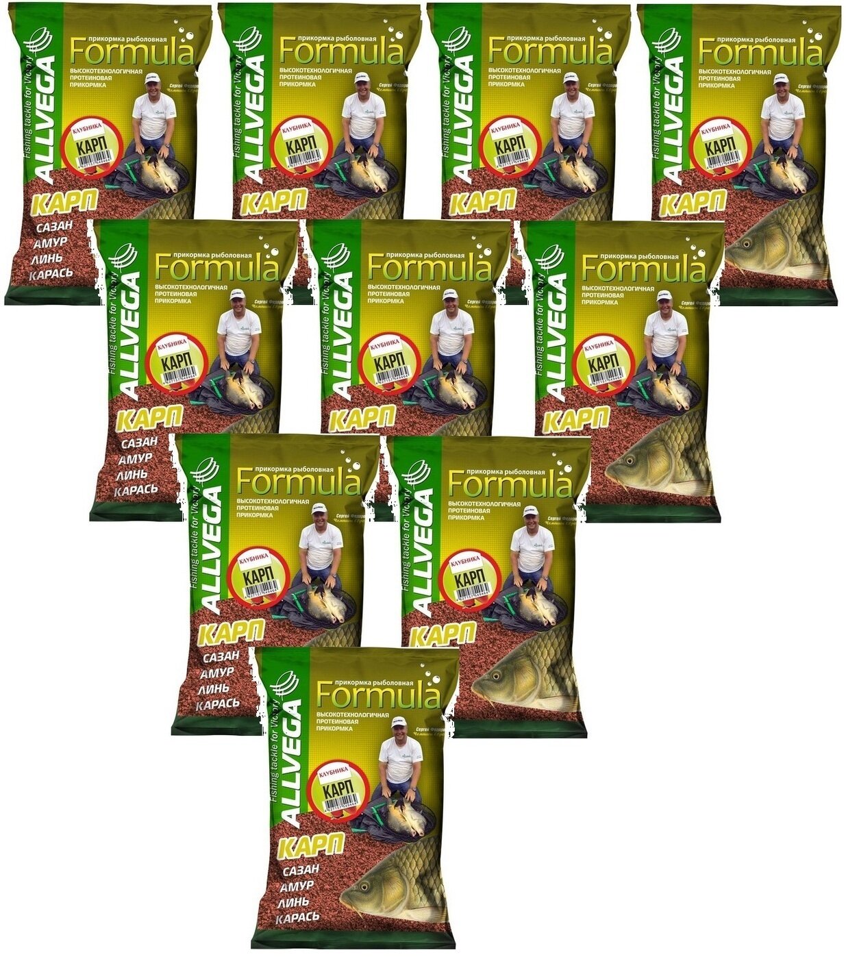 10 цен на Прикормка ALLVEGA "Formula Carp Strawberry" (карп клубника) набор 10 штук по 0.9 кг