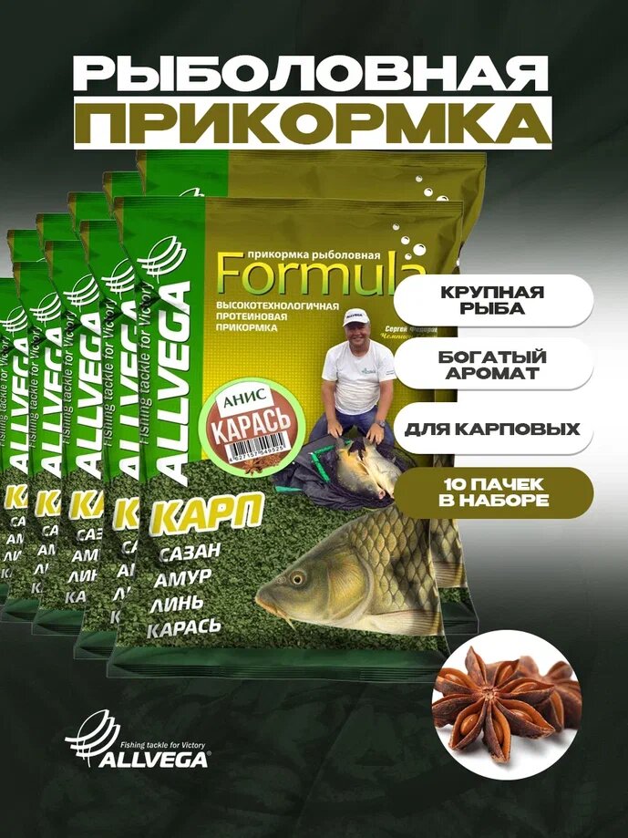 Прикормка для рыбалки ALLVEGA Formula карась с ароматом аниса 10 пачек по 0.9 кг 2 057 ₽