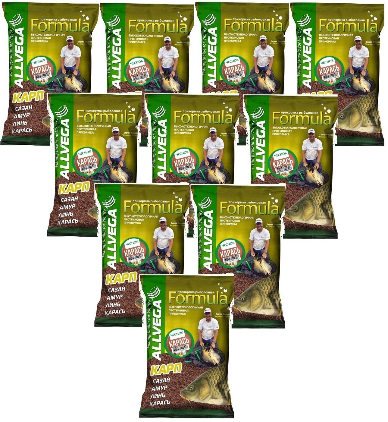 10 цен на Прикормка ALLVEGA "Formula Carassin Garlic" (карась чеснок) набор 10 штук по 0.9 кг