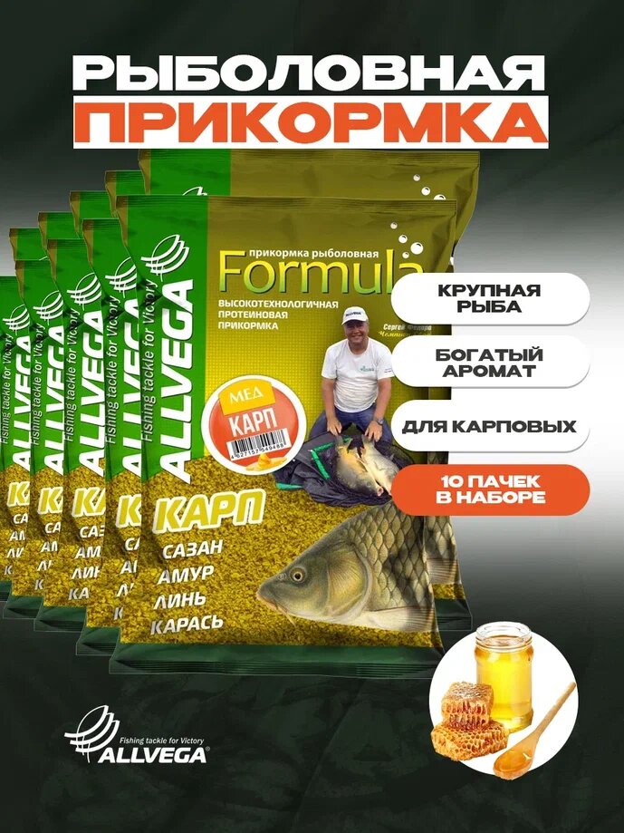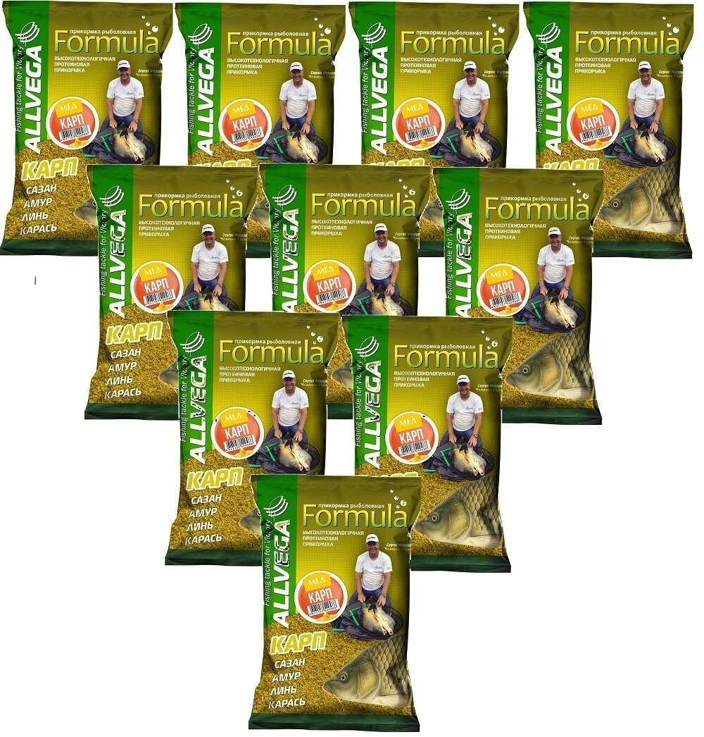Прикормка для рыбалки ALLVEGA Formula карп мед 10 пачек по 0.9 кг 2 050 ₽
