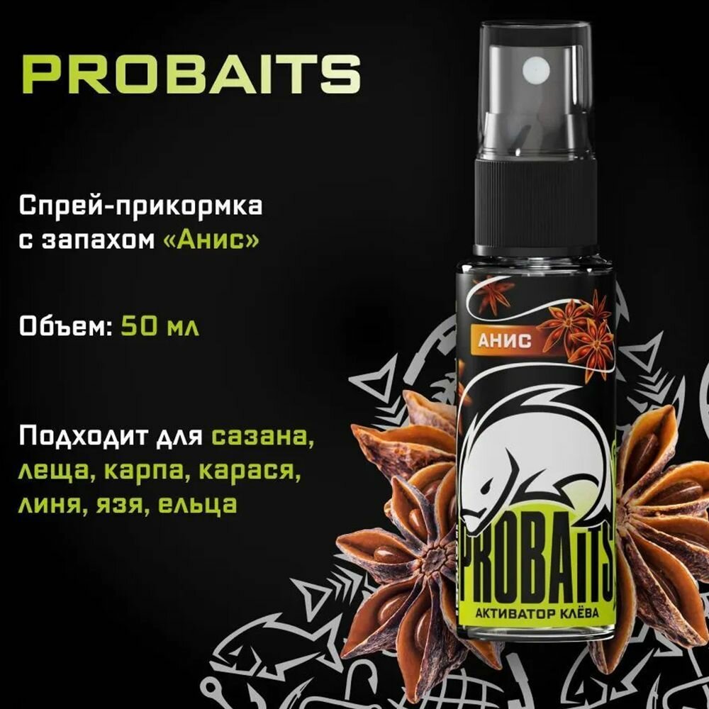 Активатор клёва PROBAITS, 50 мл, Анис / Спрей-аттрактант, ароматизатор для рыбалки информация: