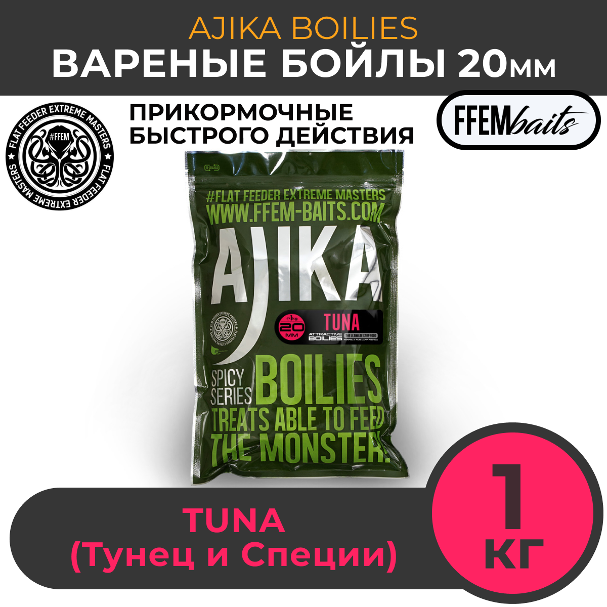 FFEM Бойлы варенный Ajika Boilies Tuna 20mm (1кг) информация: