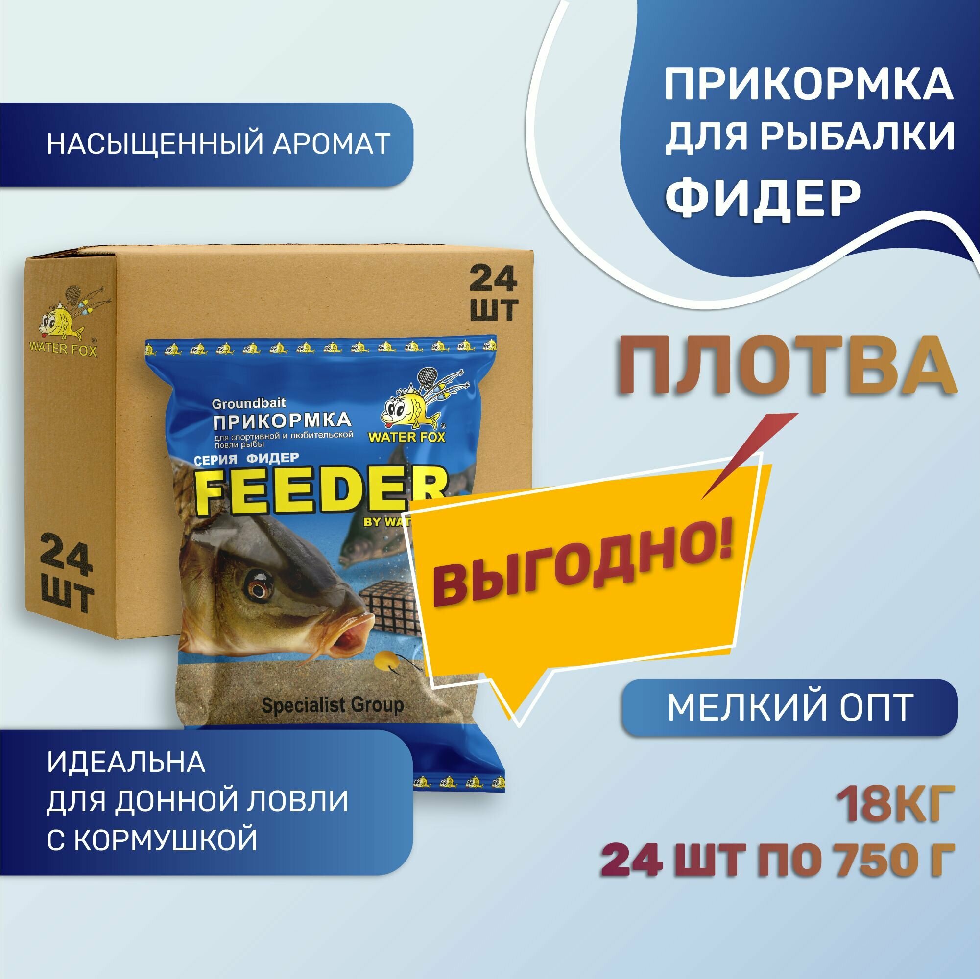 10 цен на Прикормка для рыбалки натуральная WATER FOX Серия Фидер Плотва 24шт по 750 г