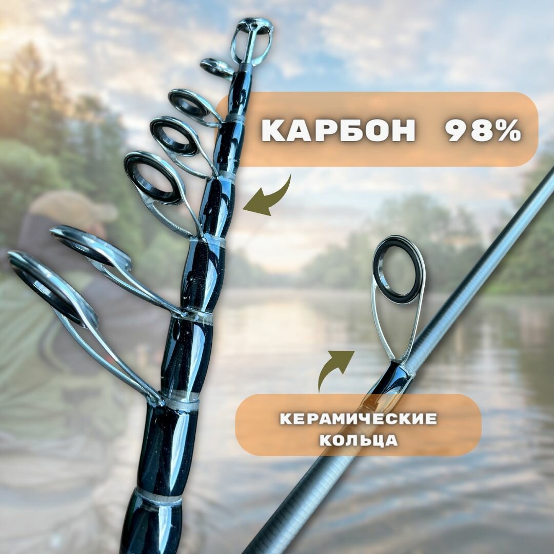 Спиннинг телескопический kumyang carbon тест 100-150г длина 240 см / спиннинг для рыбалки