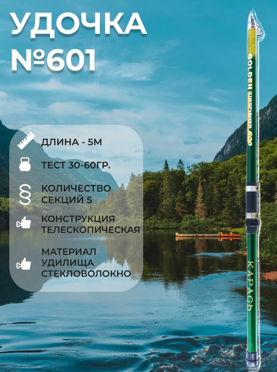 Удилище 601 стеклопластиковое телескопическое 5м Карась информация: