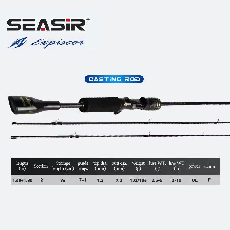 Спиннинг кастинговый ультралайт SEASIR Expiscor С602L/UL с двумя вершинками 1,68М + 1,8М, action: Fast, power: UL, 2,5-5гр информация: