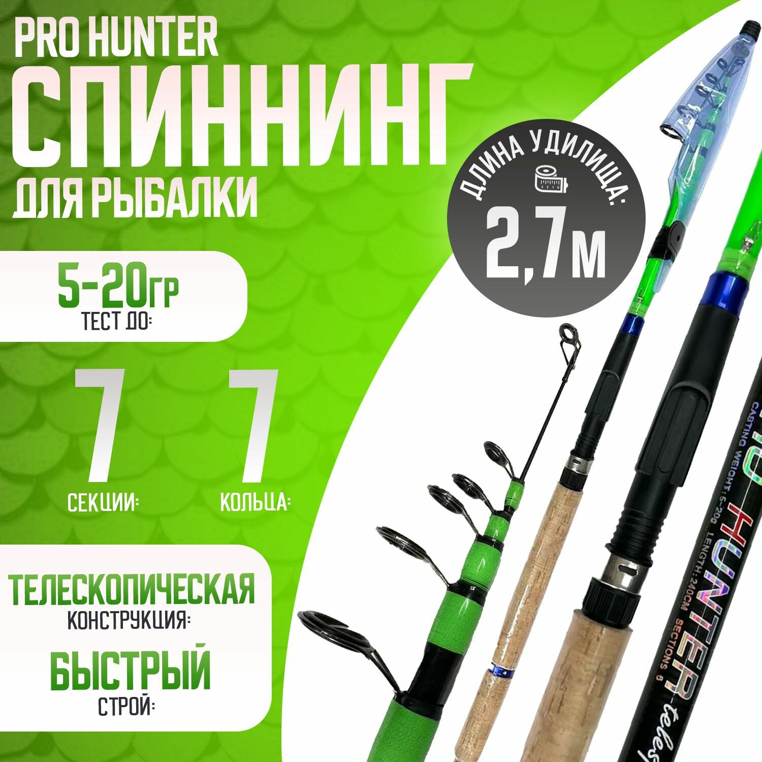 10 цен на Спиннинг для рыбалки в сборе 270см PRO HUNTER тест 5-20g с Катушкой Шнур Воблер поверхностный