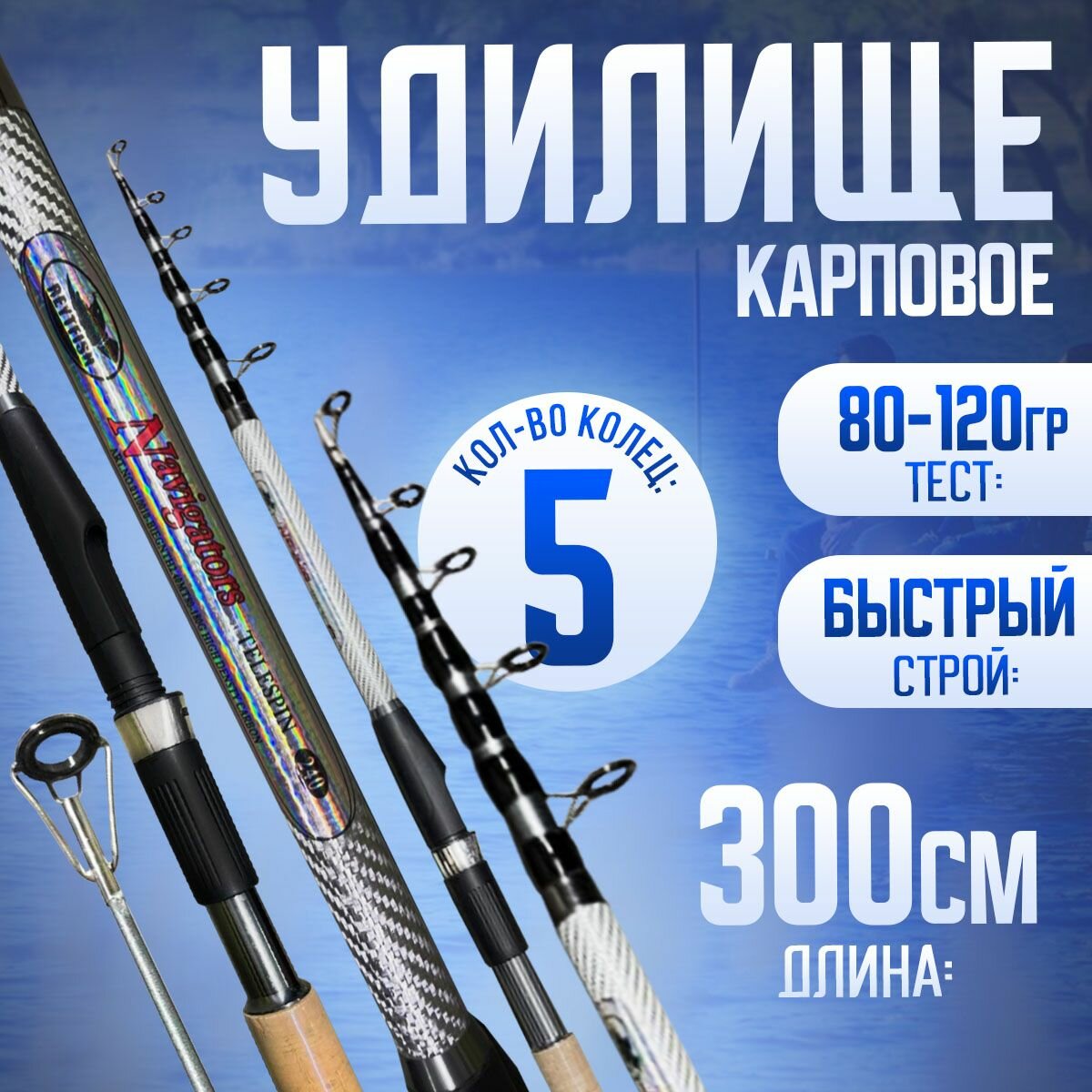Карповое удилище телескопическое Navigators TeleSpin 3м Тест: 80-120 гр информация:
