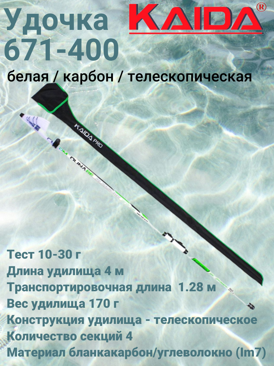 10 цен на Удочка №671 4,0м KAIDAPRO белая / карбон / телескопическая