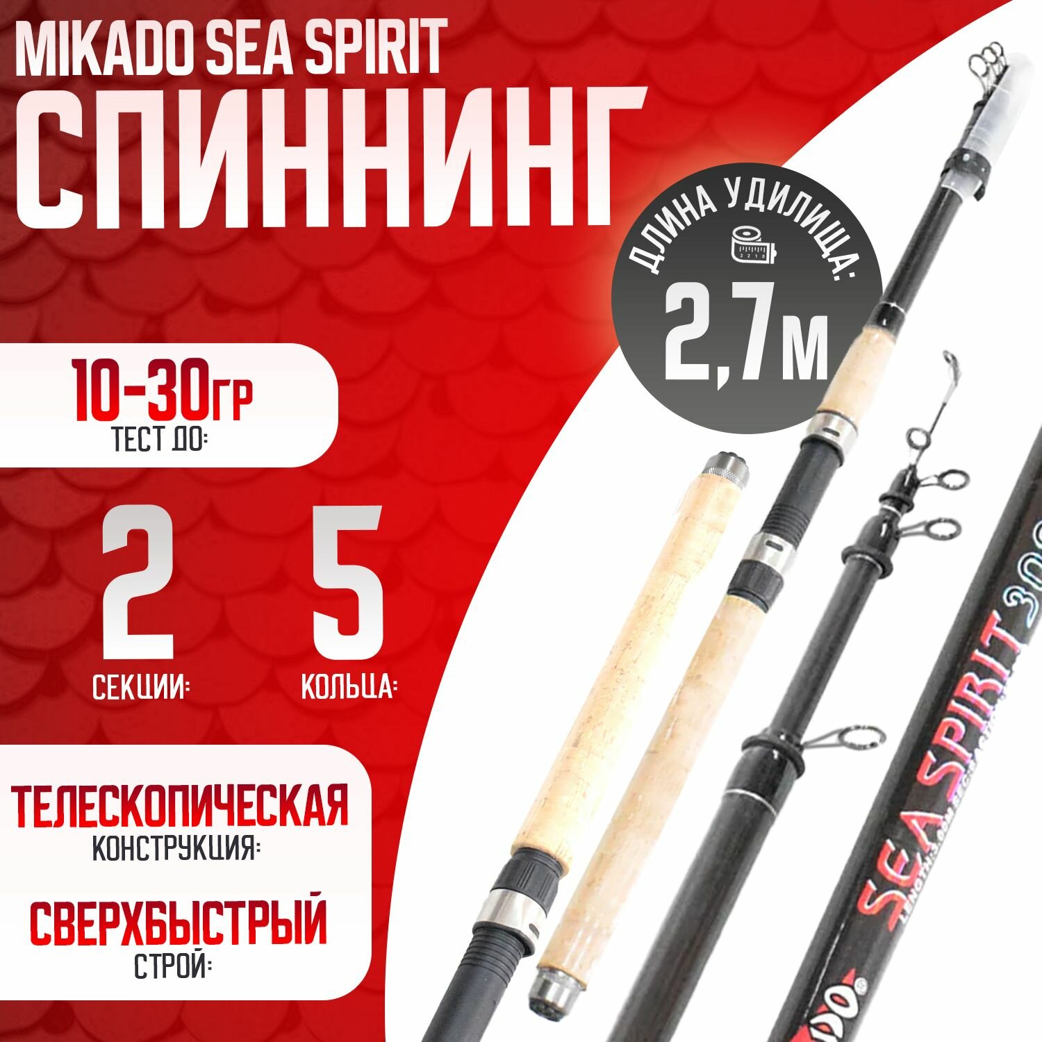 Отзывы на Спиннинг для рыбалки в сборе Mikado Sea Spirit 2.7 метр тест 10-30гр с Катушкой Шнур Воблер поверхностный