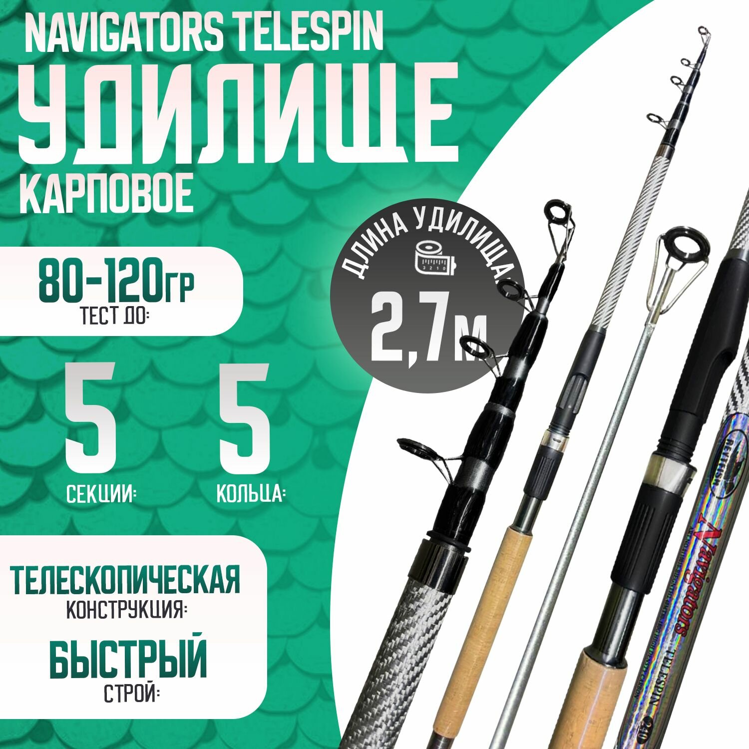 10 цен на Карповое удилище телескопическое Navigators TeleSpin 2,7м Тест: 80-120 гр с катушкой СВ 440 для " Карповой Рыбалки"