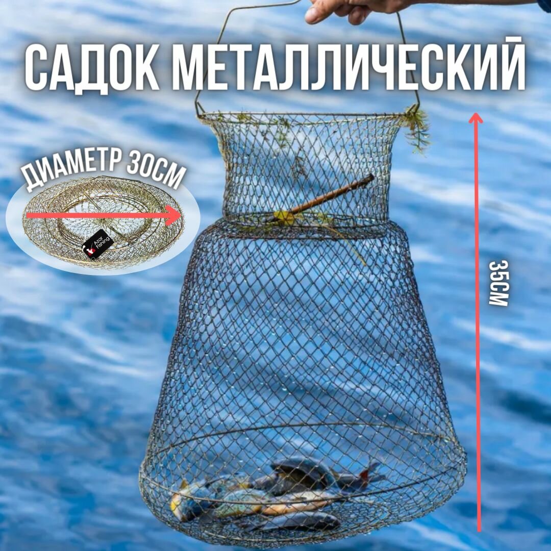 Садок рыболовный / Садок для рыбалки металлический складной диаметр 30 см длина 35см информация: