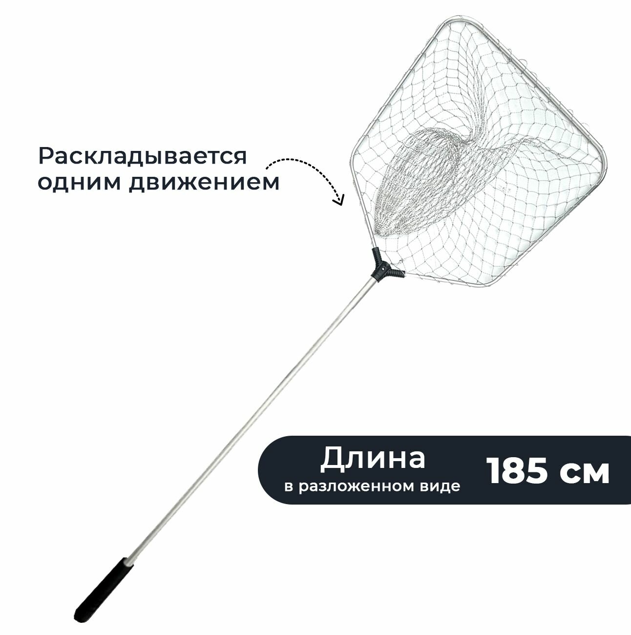 Подсачек рыболовный раздвижной / Подсак для рыбалки квадратный алюминиевый леска