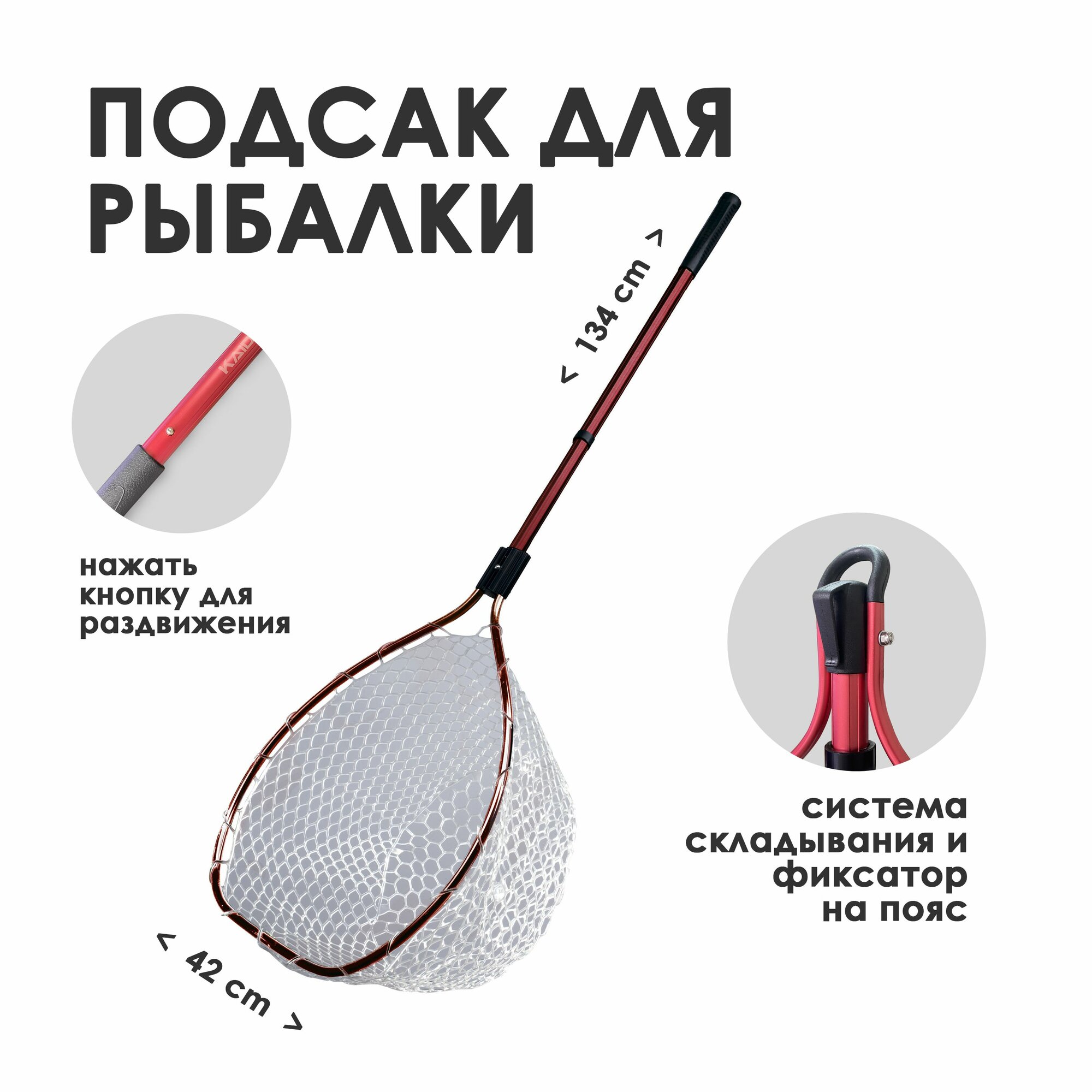 10 цен на Подсак для рыбалки, складной с раздвижной ручкой KAIDA A69-50 / Садок рыболовный / Силиконовый подсачек круглый, красный