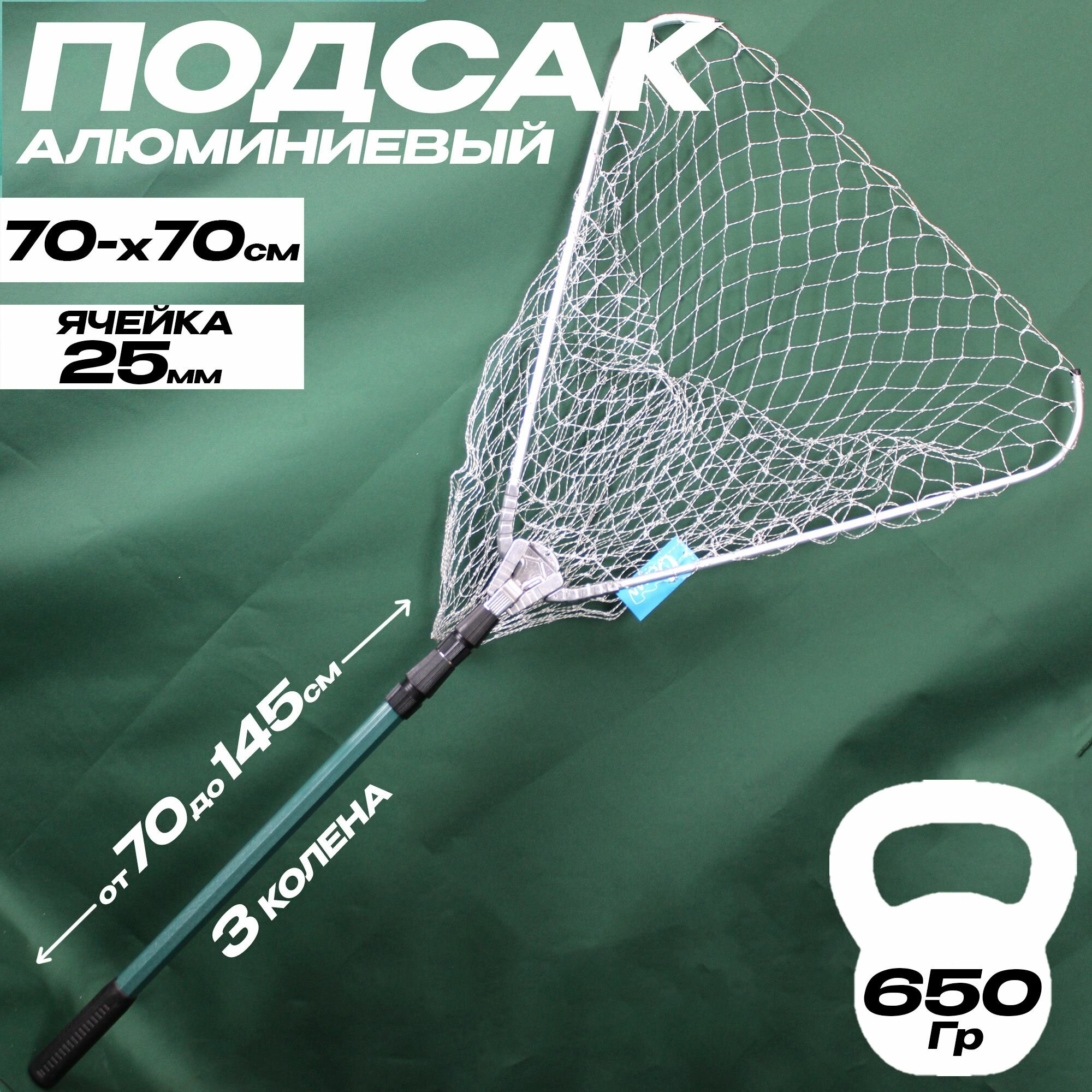 Подсак для рыбалки 210 см, 70х70 см информация: