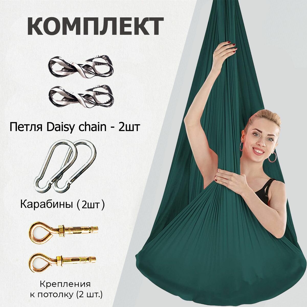 Гамак для аэройоги Rekoy нейлон, 5м*2.8м, крепление к потолку, темно-зеленый