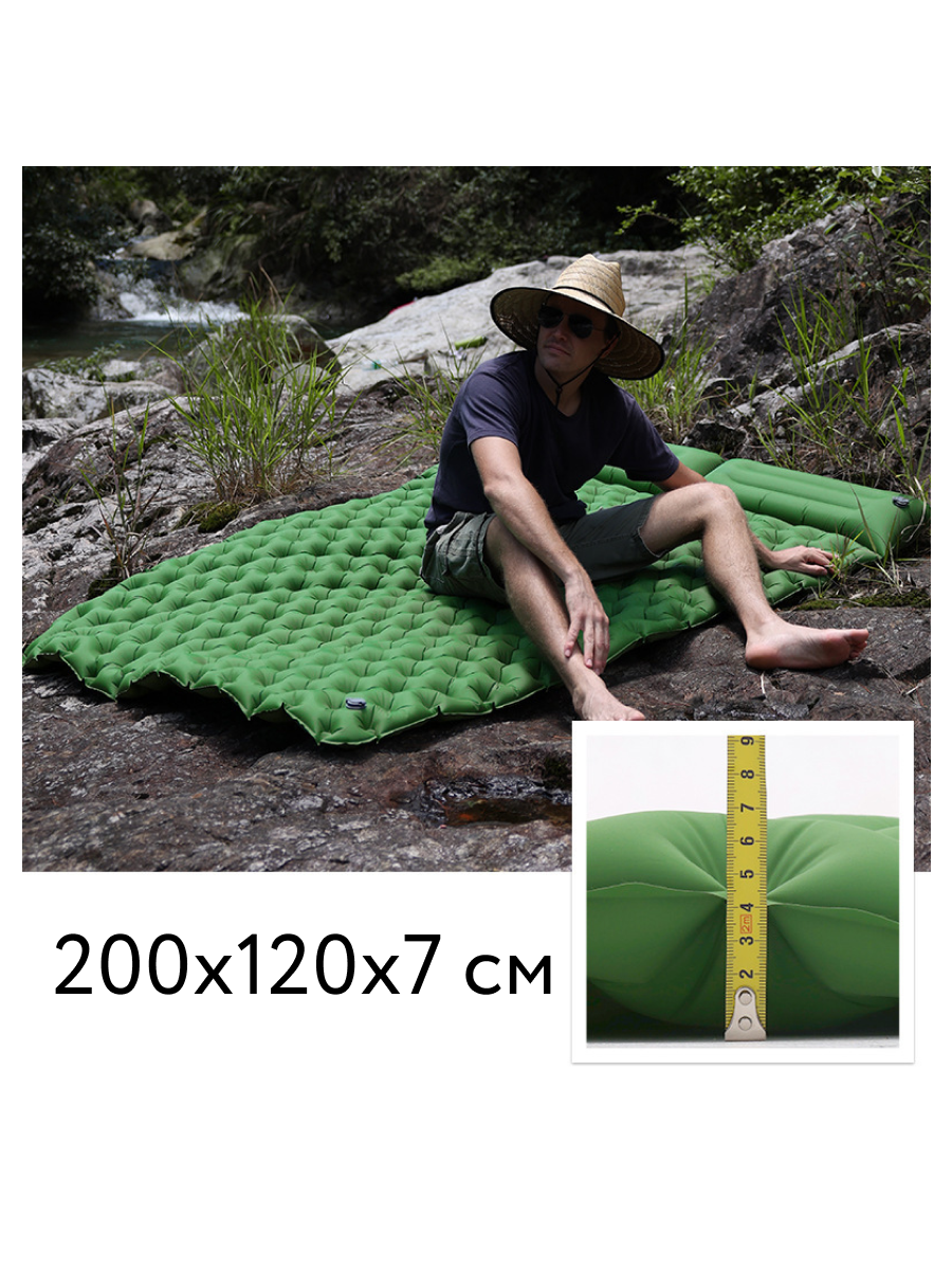 10 цен на Коврик туристический самонадувающийся двухспальный, зеленый
