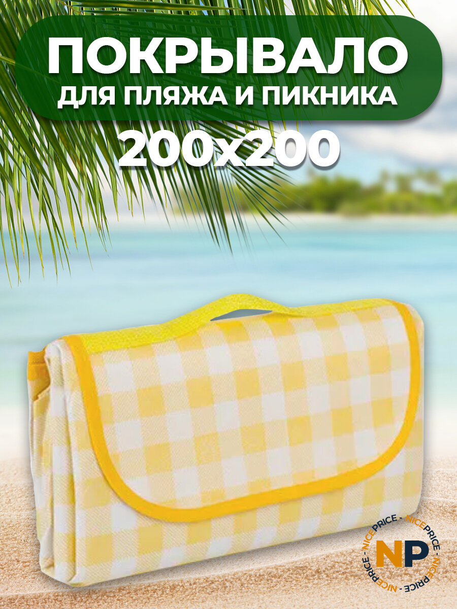 Непромокаемый складной туристический коврик для пляжа и пикника 200х200 см, жептый