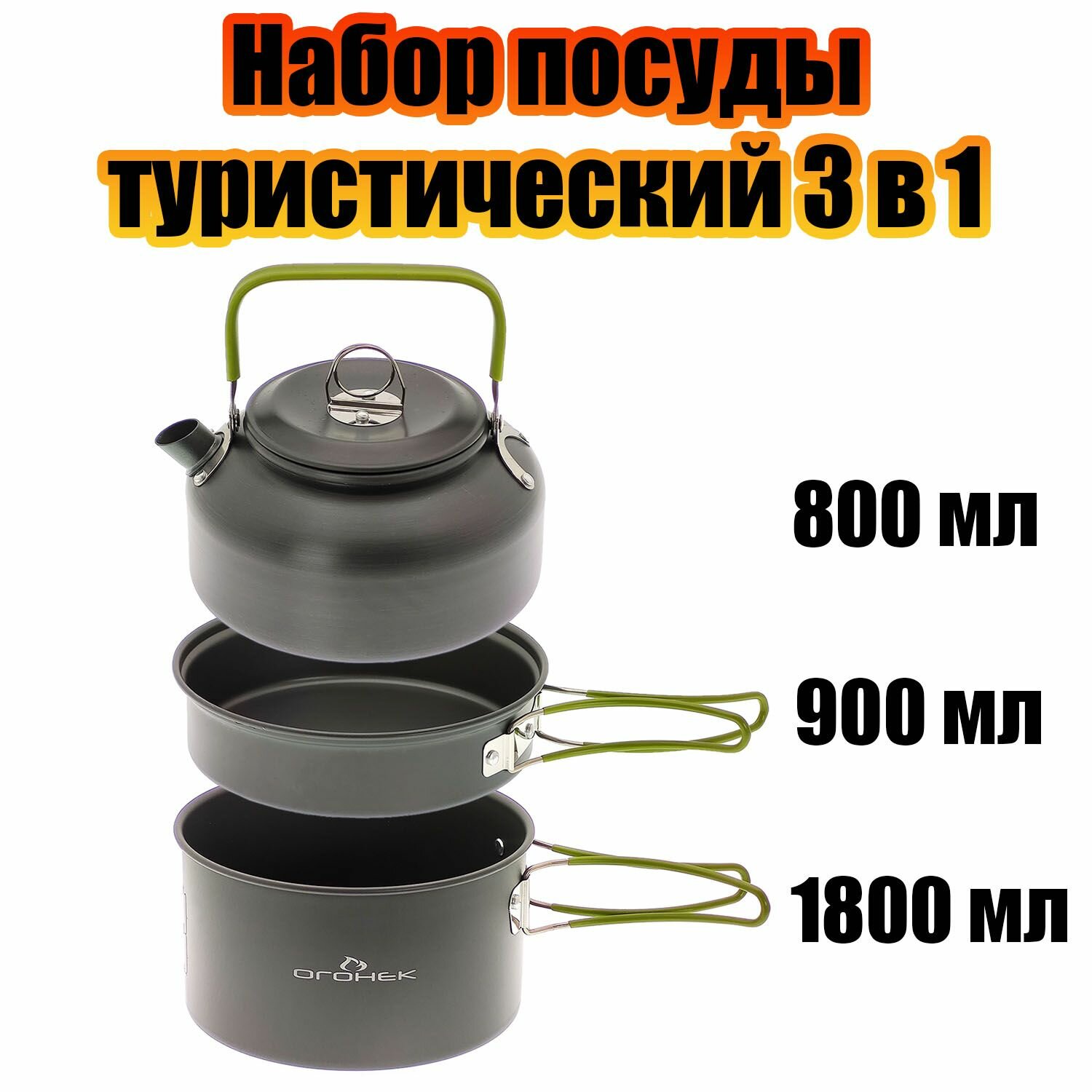 10 цен на Посуда туристическая набор 3 в 1 Огонёк OG-TRD01