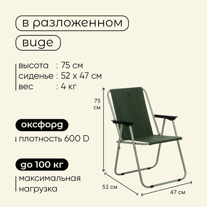 Кресло складное, 47 х 52 х 75 см, до 100 кг, цвет зелёный информация: