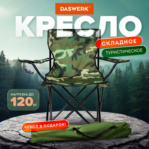 Кресло складное туристическое садовое с подстаканником в чехле, камуфляж, DASWERK, 680046 информация: