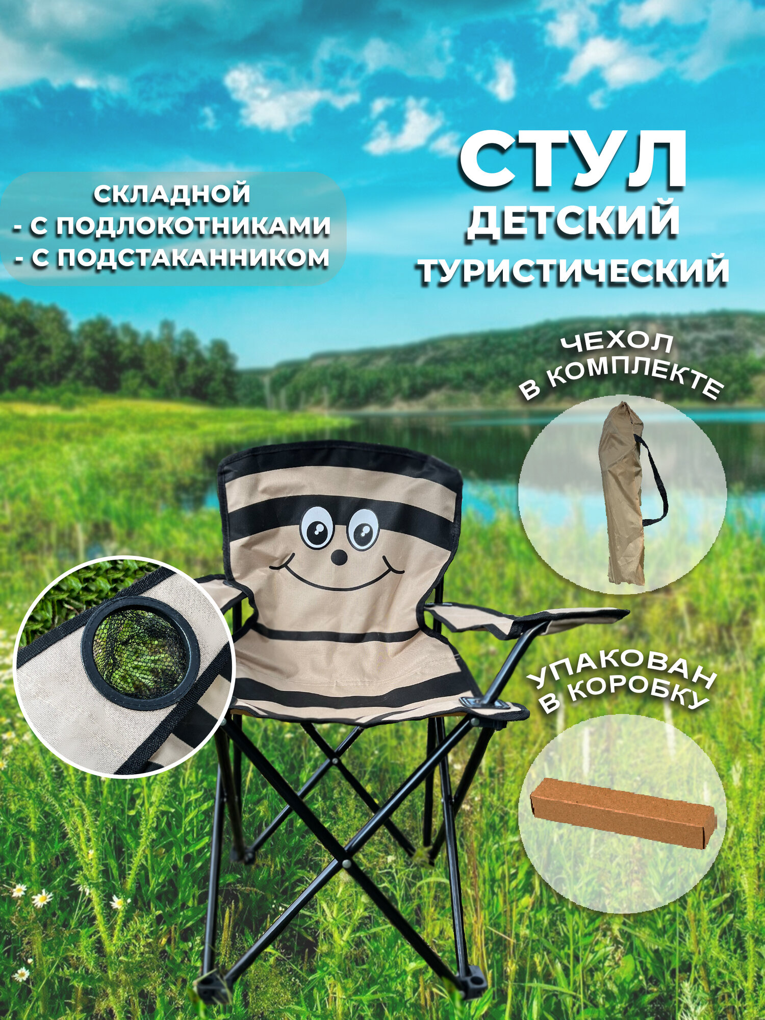 Отзывы на Стул туристический детский складной с с подлокотниками и подстаканником Gardens, бежевый