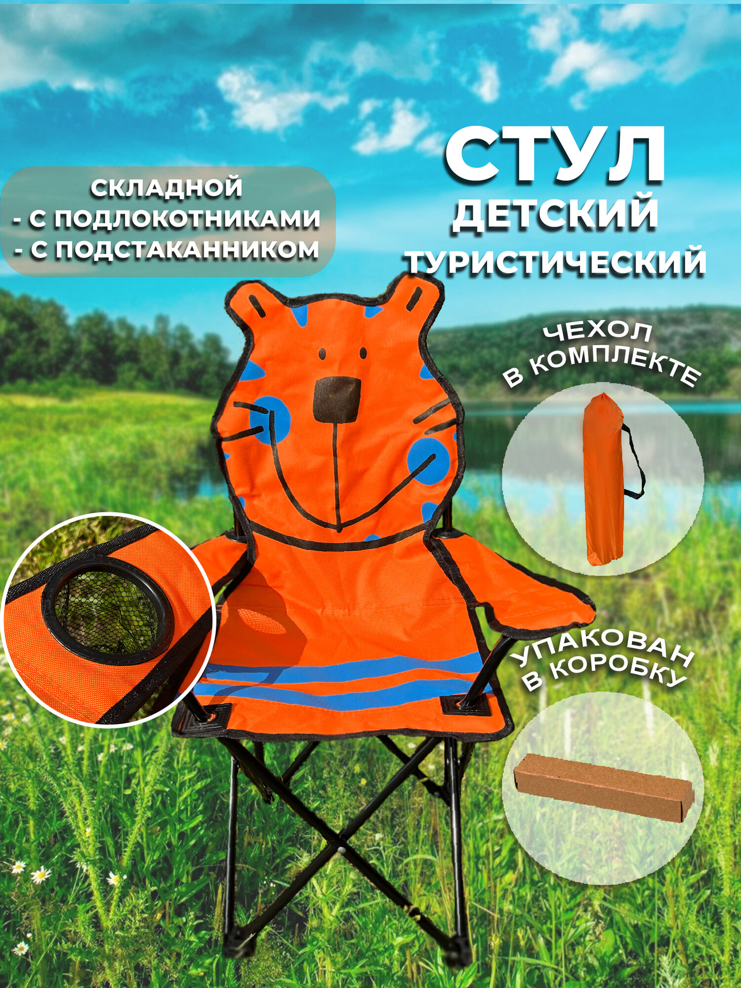 Отзывы на Стул туристический детский складной с с подлокотниками и подстаканником Gardens, оранжевый