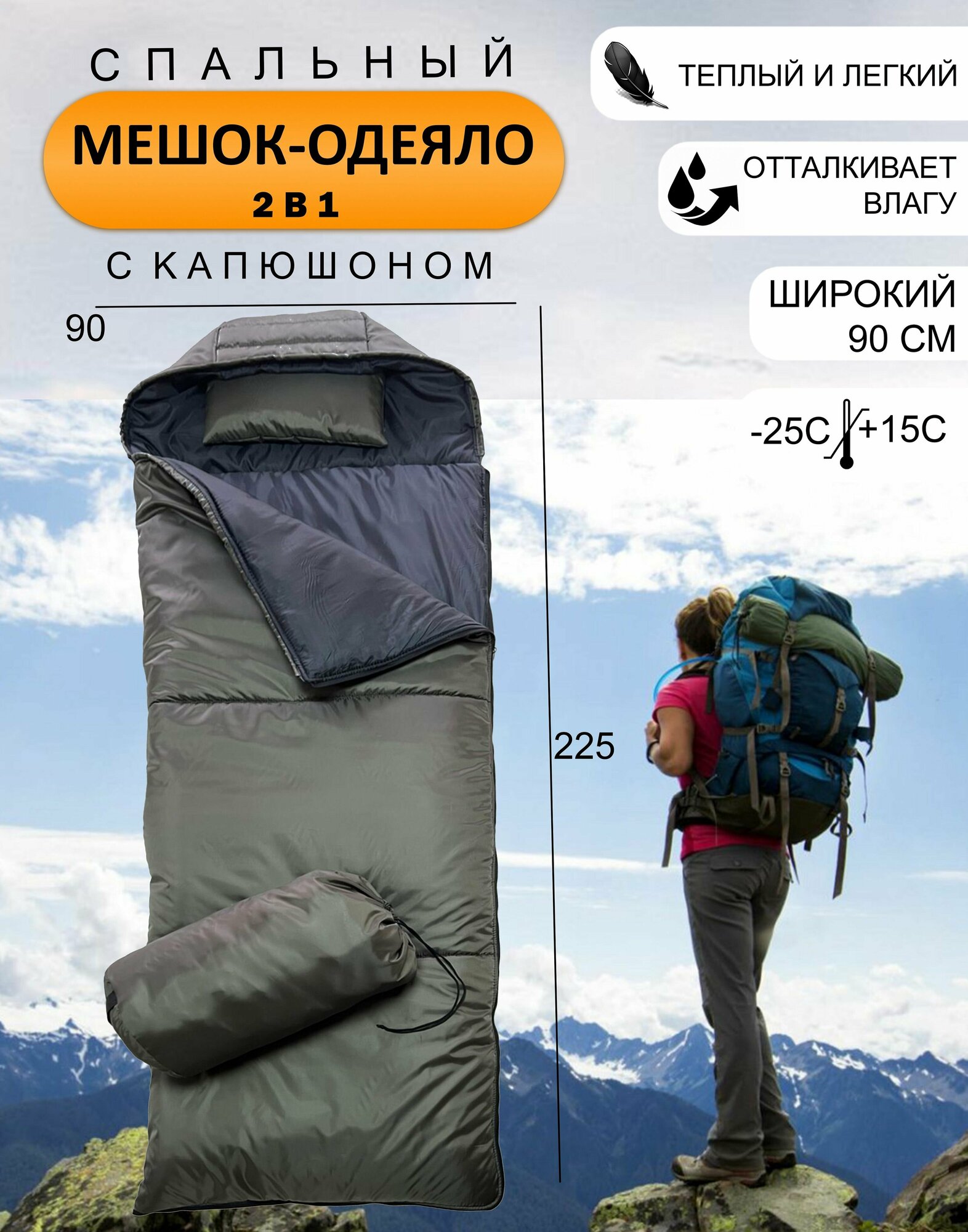 Спальный мешок туристический 2 в 1 одеяло 300 синтепон -15