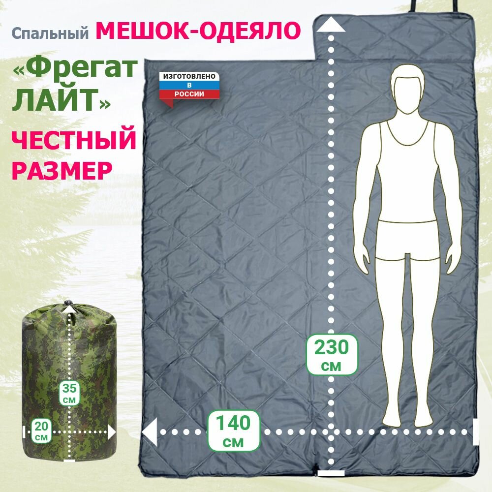 | Дополнительная информация | Тип конструкции спального мешка Фрегат - спальник-одеяло. Это очень простая и удобная в эксплуатации конструкция. Спальник-одеяло не стесняет движения во время сна, в отличии от конструкции «кокон». Со спальником Фрегат вы будете чувствовать себя уютно и комфортно. |