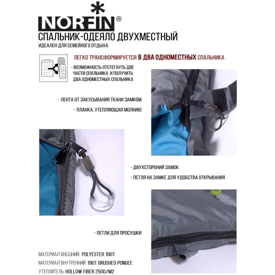 Мешок-одеяло Norfin ALPINE COMFORT DOUBLE 250 спальный, 2 подушки в комплекте информация: