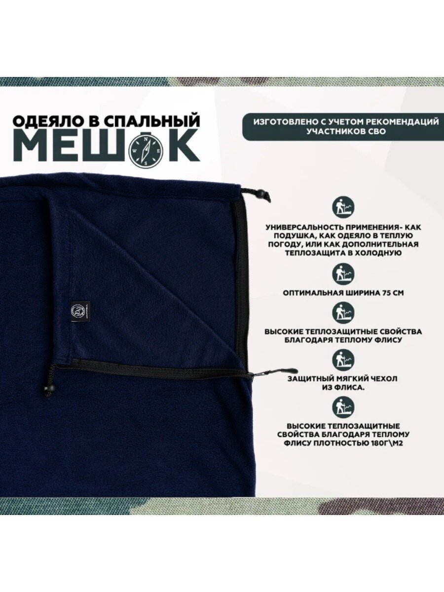 10 цен на Флисовый вкладыш в спальный мешок 190*75 одеяло утеплитель спальника Everena dark_blue fleece 190_75