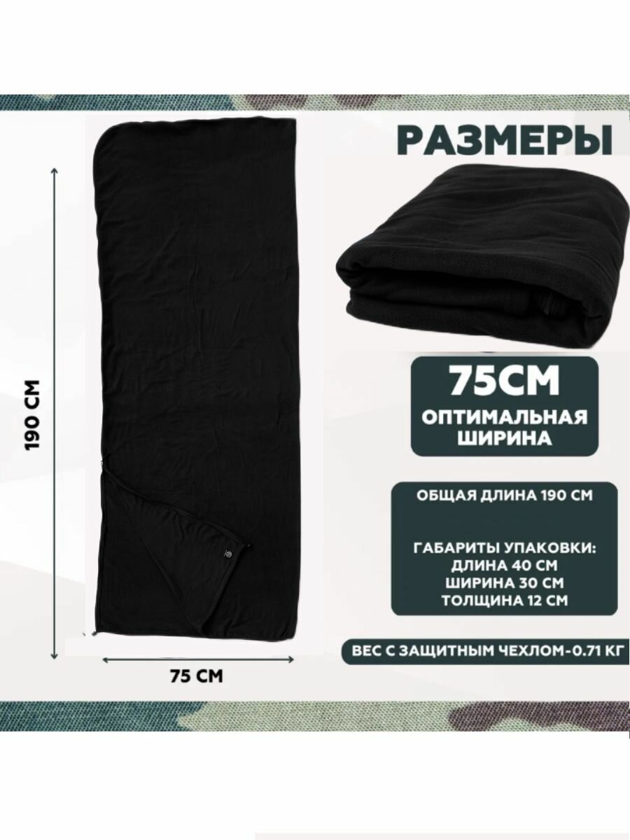 10 цен на Флисовый вкладыш в спальный мешок 190*75 одеяло утеплитель спальника Everena black fleece 190_75