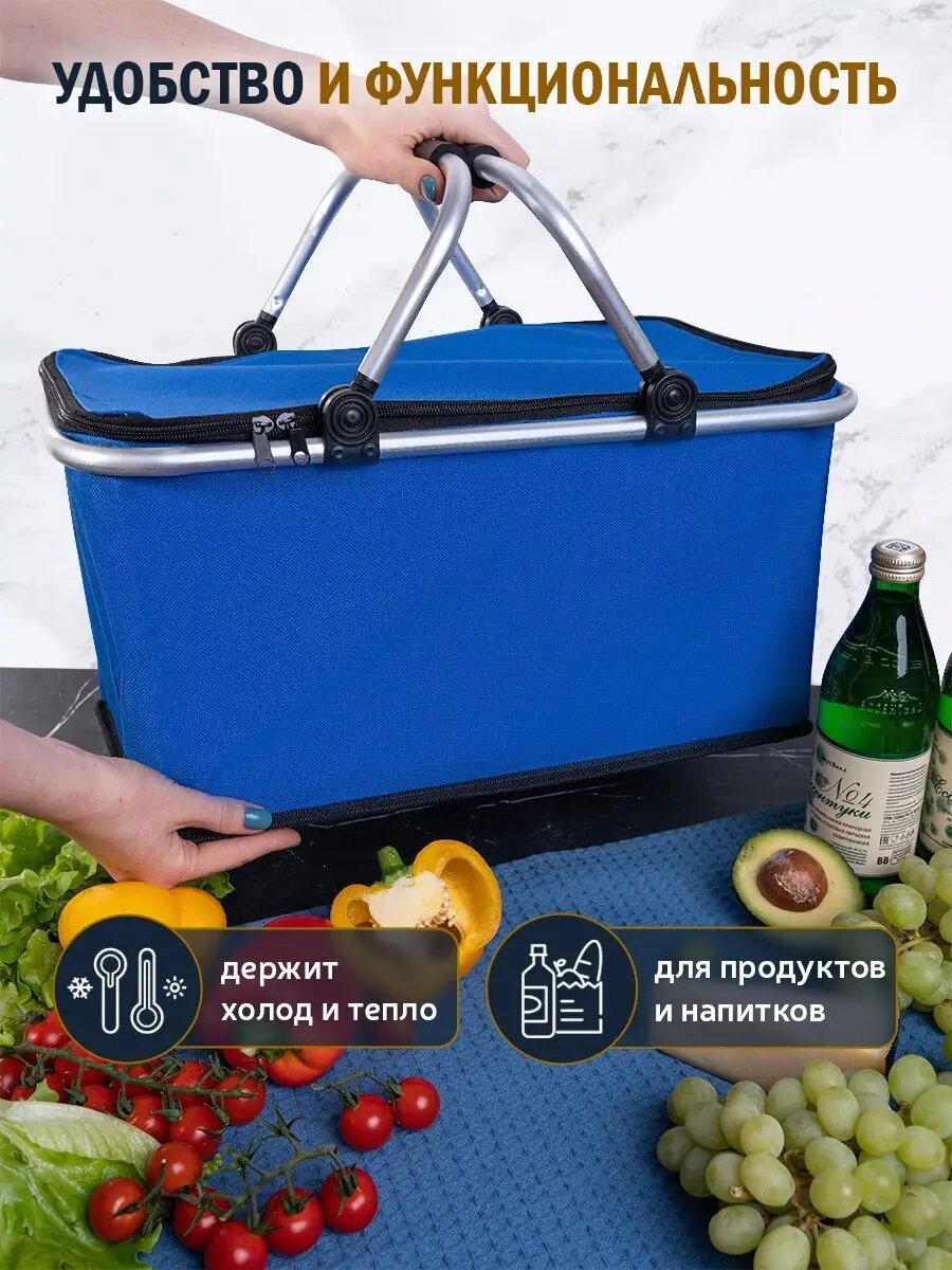 Отзывы на Термосумка холодильник для продуктов и напитков / для ланча (пикника), объем 26 литра, 12 часов, синий + 2 аккумулятора холода в подарок