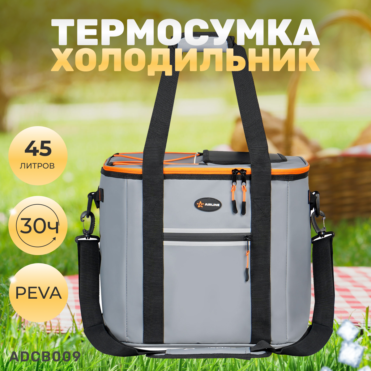 ADCB009 AIRLINE Сумка-холодильник (термосумка)Пикник, 45л, 38*34*35см, водонепр.,серая (ADCB009)