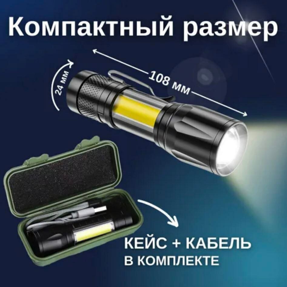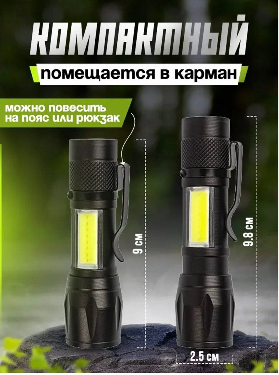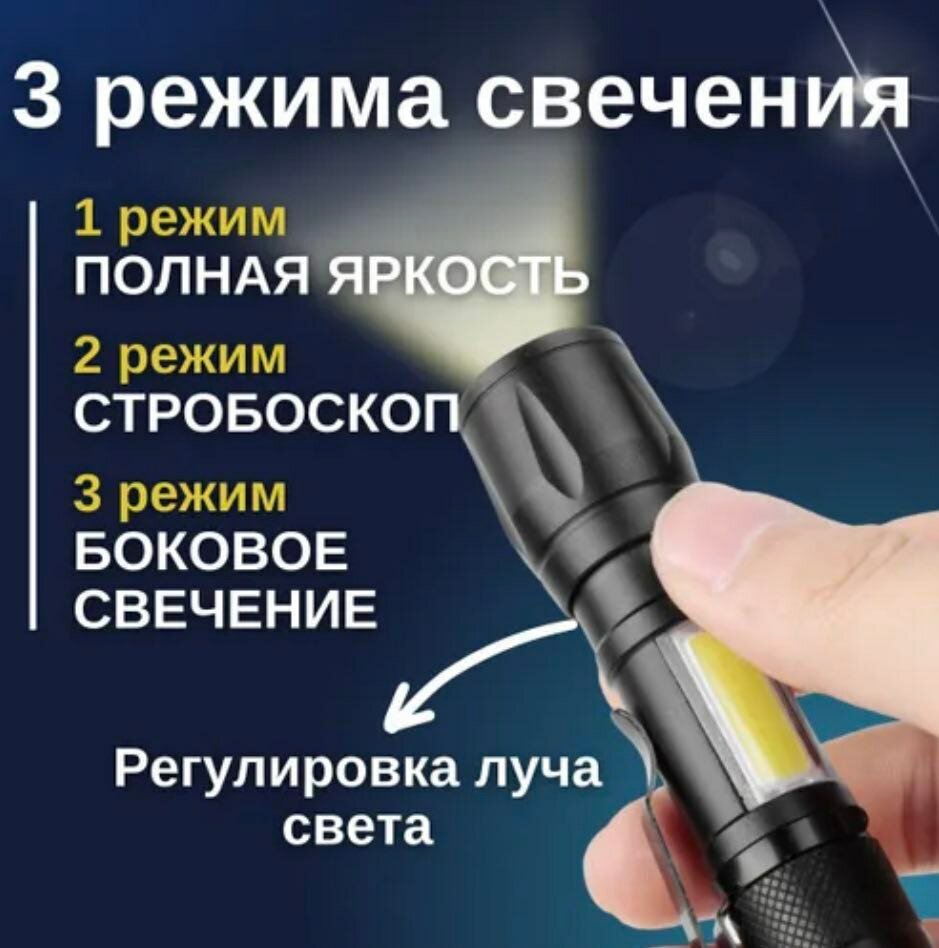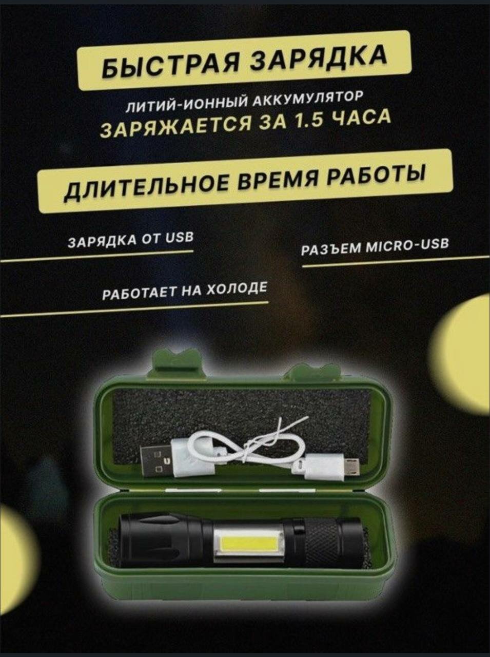 Фонарик ручной светодиодный c аккумулятором / сверхъяркий фонарь с фокусировкой и зарядкой microUSB, мини информация: