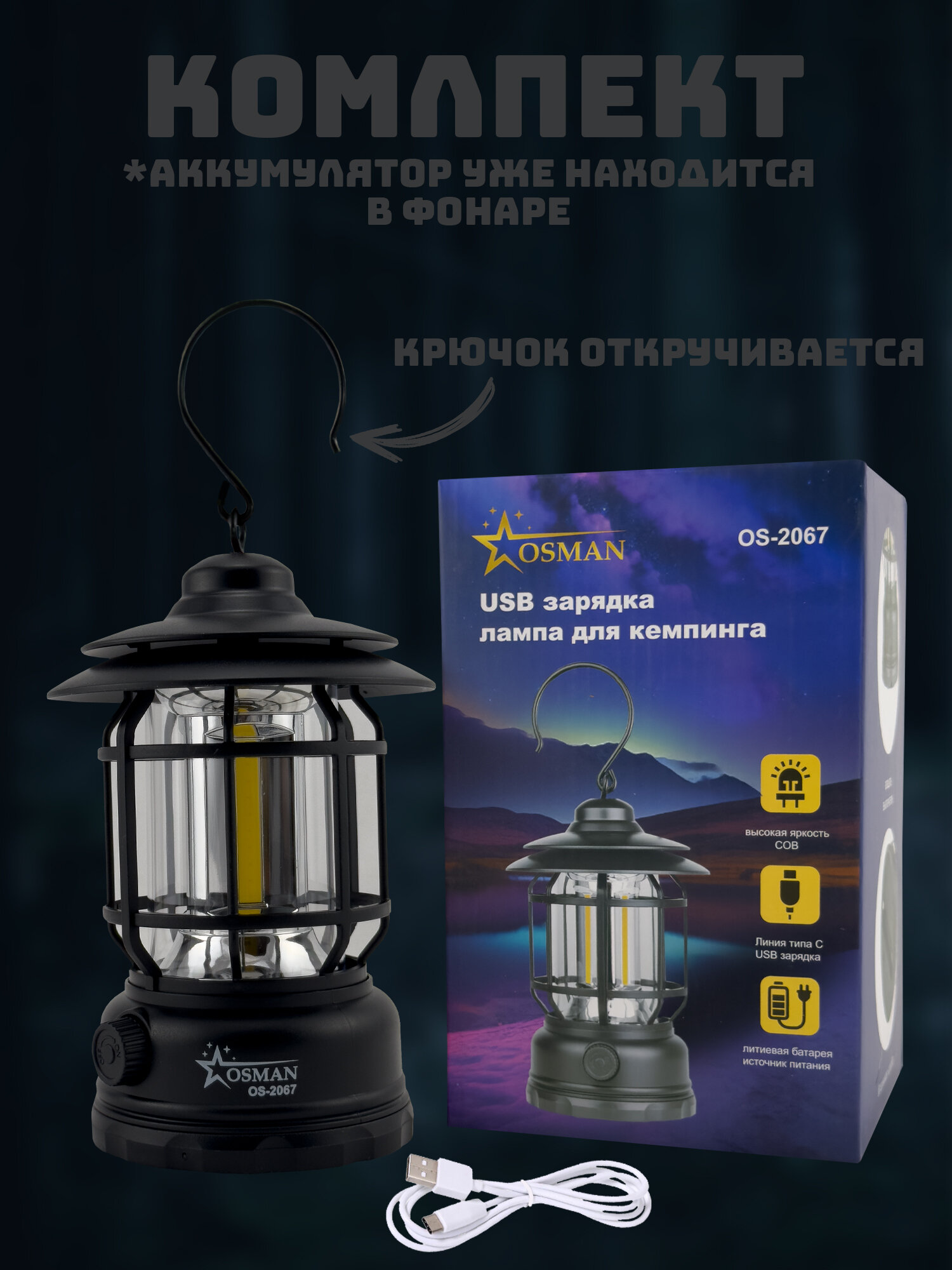 Фонарь Кемпинговый Подвесной Аккумуляторный Портативный Ретро Стиль Винтажный Светильник черный информация:
