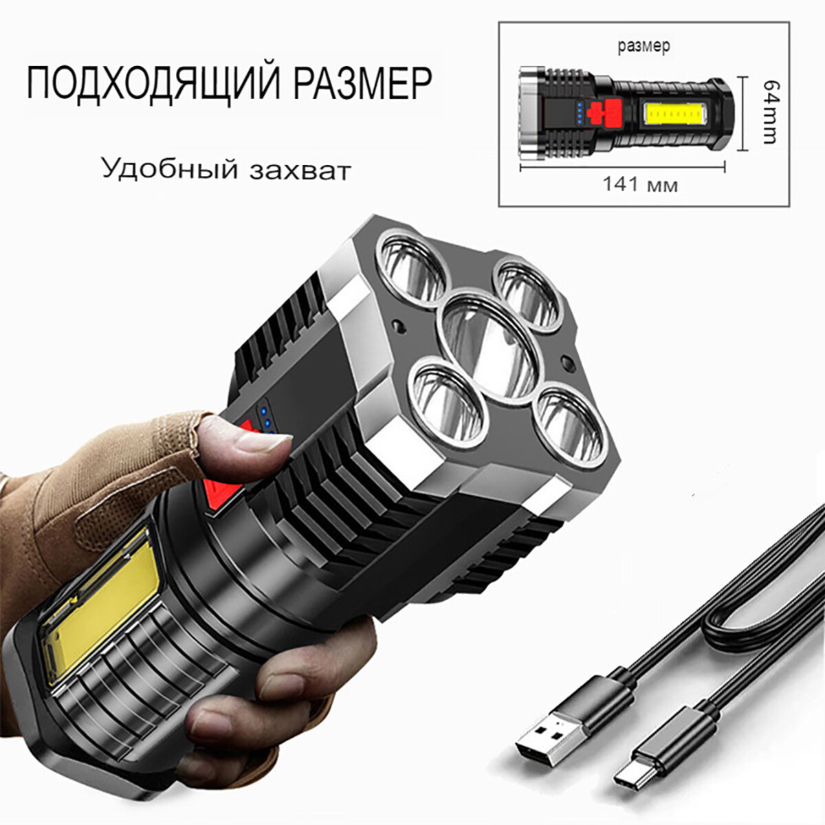 Фонарик ручной с индикатором, водонепроницаемый/перезаряжаемый/бликовый фонарик информация: