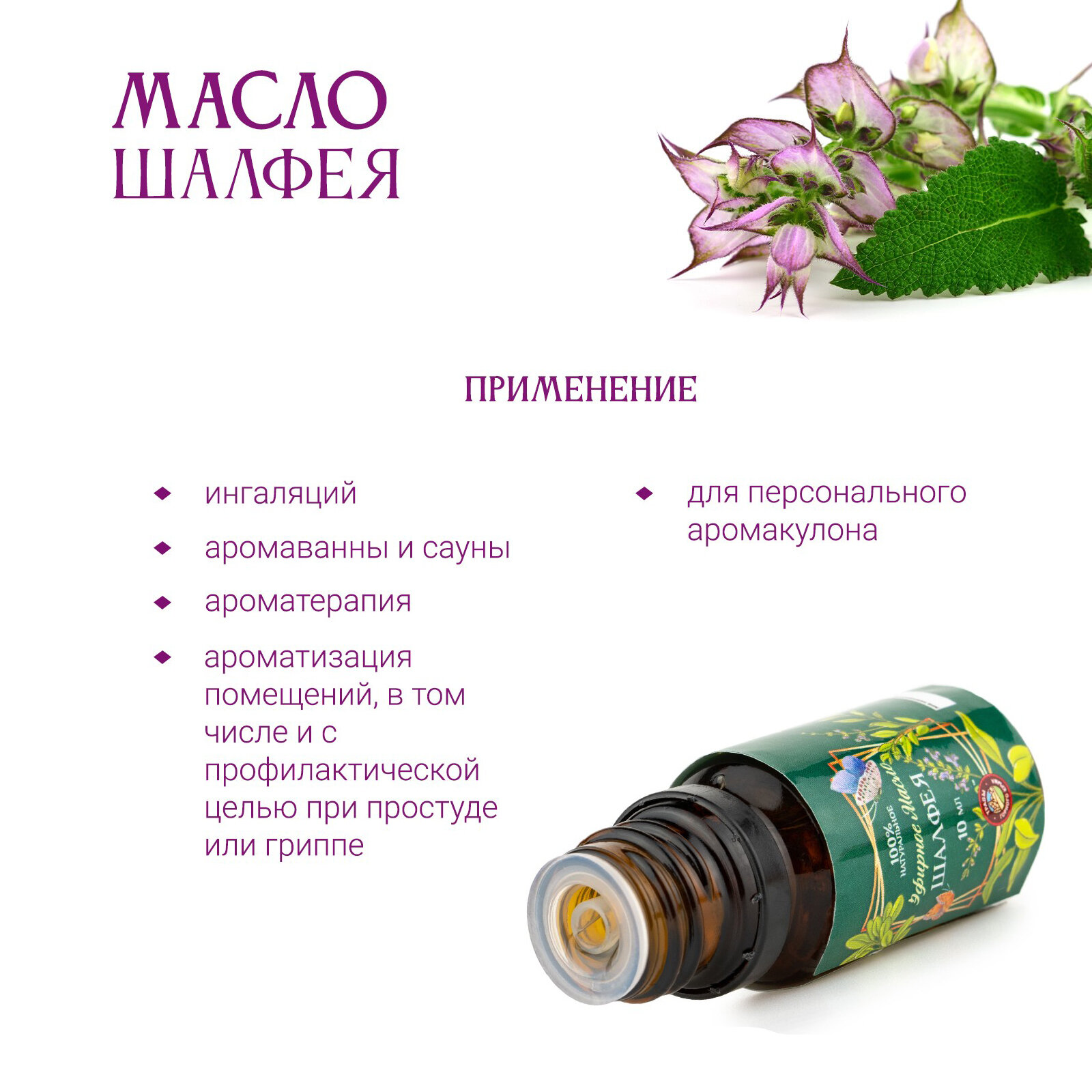 Эфирное масло шалфея Травы Горного Крыма натуральное для бани аромалампы, 10 мл информация: