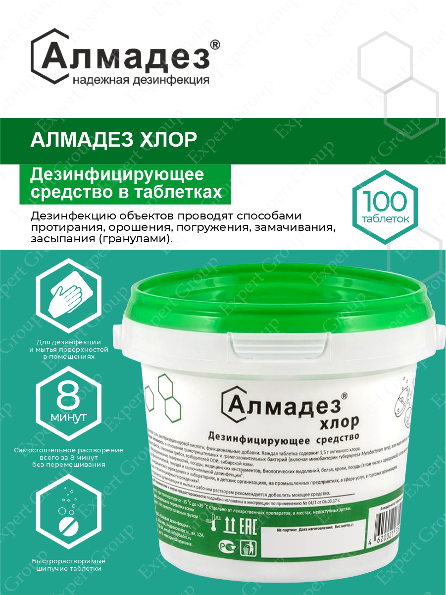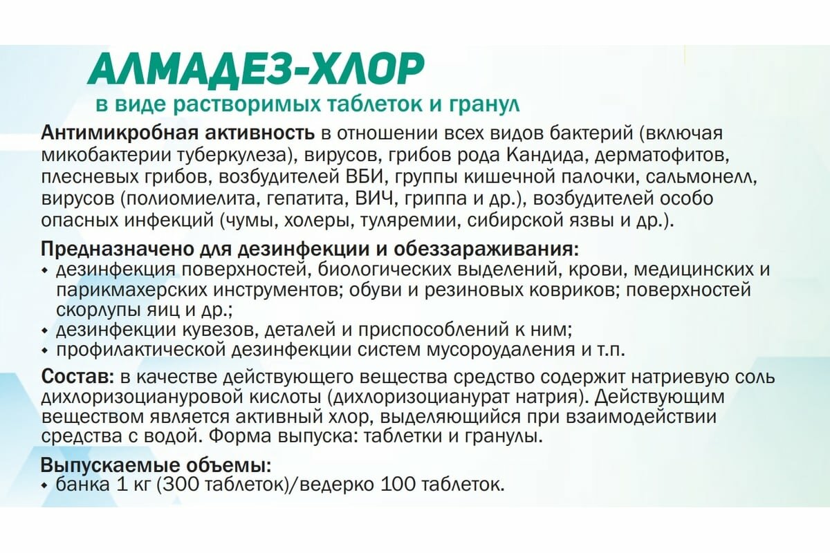 Дезинфицирующее средство Алмадез-хлор (таб.3,4г. №100) информация: