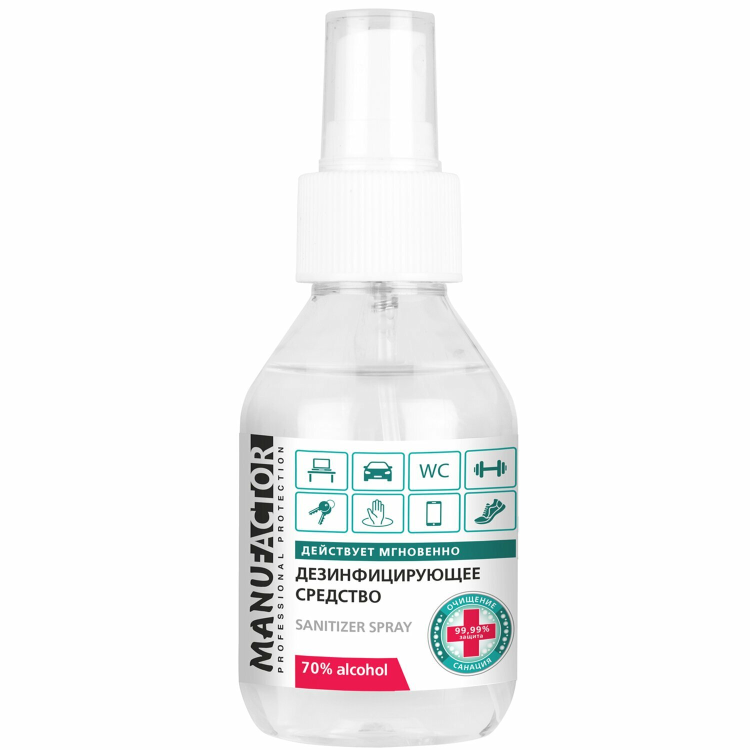 Антисептик для рук и поверхностей спиртосодержащий (70%) с распылителем 100 мл MANUFACTOR, дезинфицирующий, жидкость, N30913 (цена за 1 ед.товара)